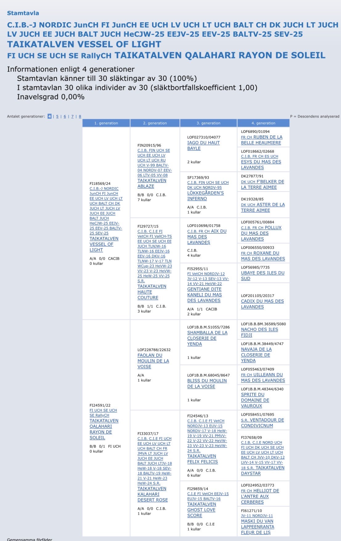 (Minttu har inte alla titlar med i denna tänkta stamtavla pga att den genererats via FKKs Koiranet)